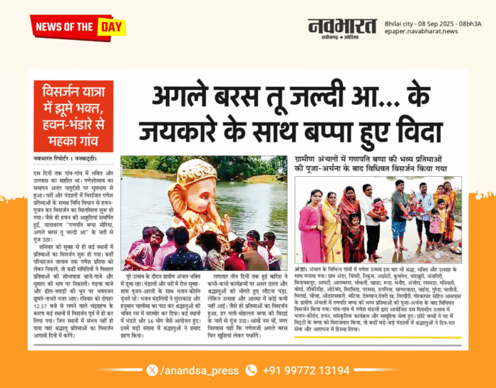 ननकट्ठी। दस दिनों तक गांव-गांव में भक्ति और उल्लास का संगम रचने वाले गणेशोत्सव का समापन अनंत चतुर्दशी पर धूमधाम से हुआ। घरों और पंडालों में विराजित गणेश प्रतिमाओं के समक्ष विधि विधान से हवन-पूजन कर विसर्जन का सिलसिला शुरू हो गया। जैसे ही हवन की आहुतियां समर्पित हुईं, वातावरण “गणपति बप्पा मोरिया, अगले बरस तू जल्दी आ” के नारों से गूंज उठा।